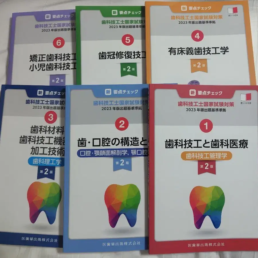 치과 기공사 자격 취득을 위한 2023년판 텍스트 6권 세트.