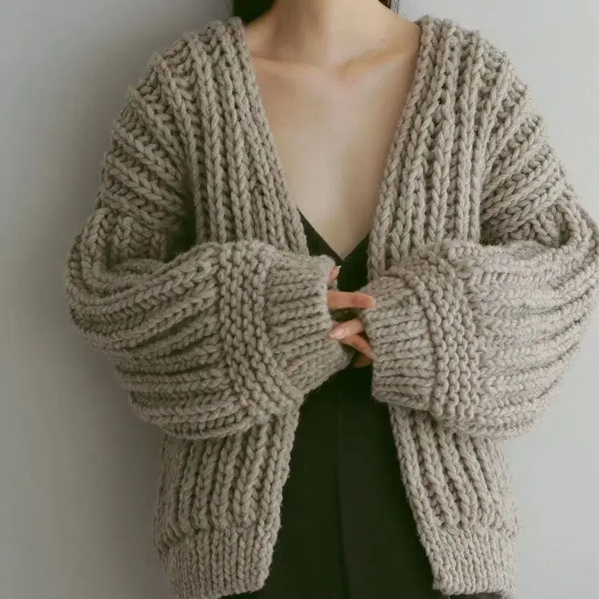 인상이 강한 초와이드 실을 사용하여 페루에서 큼직하게 손뜨개질로 짠 니트 가디건입니다.