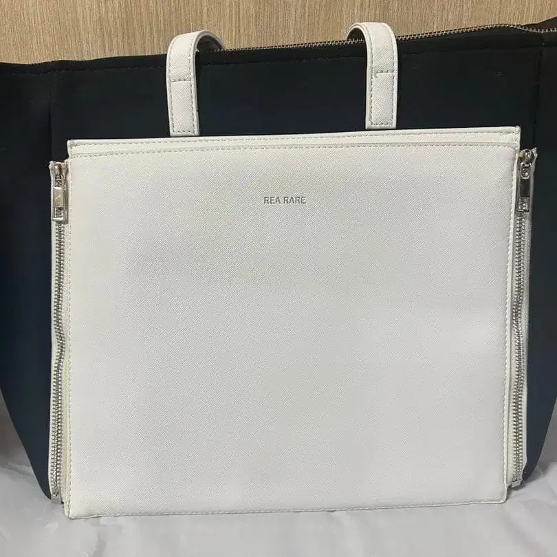 레어 레어 이타백 토트 바이컬러 화이트
