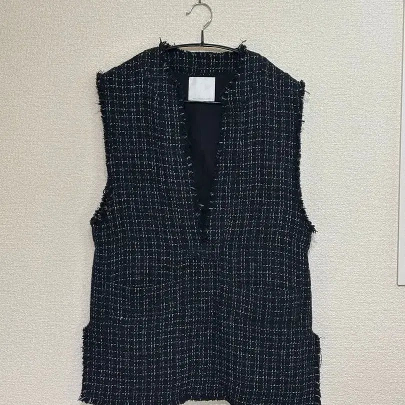 트위드 소재의 노카라 베스트, 프린지 마감