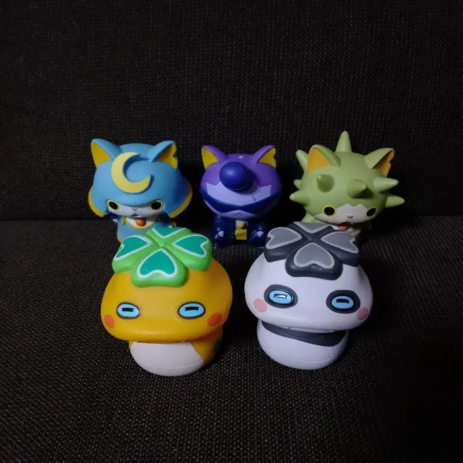 요괴워치 반다이 소프트 비닐 시리즈입니다. 손가락 인형이 아닌 약 9cm 사이즈입니다. 5체 세트로 판매합니다. 부시냥 와루냥 (머리에 구멍 있음) 토게냥 츠치노코 츠치노코팬더 중고품에 이해가 있는 분은 검토 부탁드립니다.