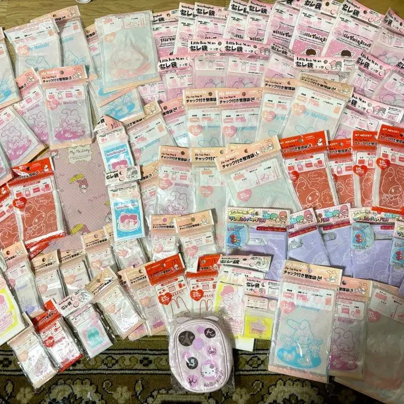 산리오 셀레백, 정리백 80점 이상 묶음 판매입니다. 클리어 파일, 파우치, 선물용 백 등 미사용 새상품이지만, 보관 시 발생한 얼룩이나 늘어남 등은 이해해 주실 수 있는 분만 입찰 부탁드립니다. 산리오 굿즈 덤도 함께 드립니다. 헬로키티 마이멜로디 키키라라