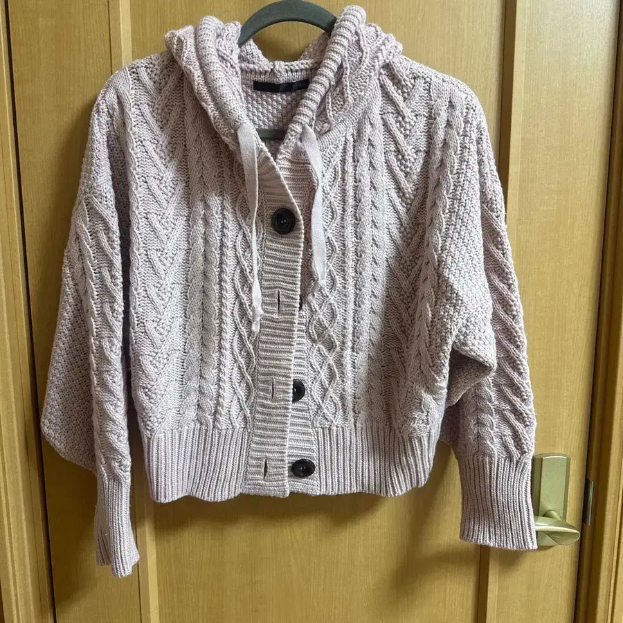 Heather 헤더 후드 부착 핑크 니트 가디건