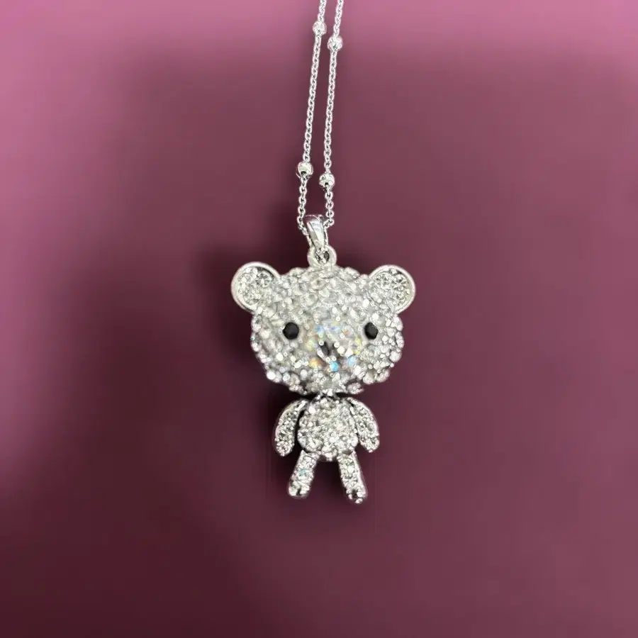 크리스탈 장식의 곰 모양 펜던트, 스테인리스 체인 포함. - 디자인: 곰 캐릭터 펜던트 - 소재: 크리스탈 장식 - 색상: 실버 - 체인 길이: 중간 - 사이즈: 약 3.5cm (캐릭터 부분) 방문해 주셔서 감사합니다.
