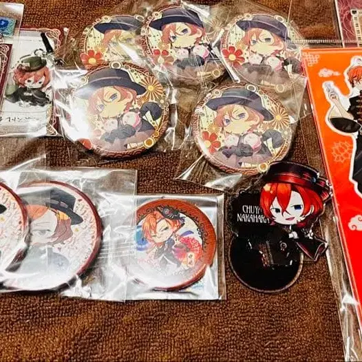 문호 스트레이독스 나카하라 츄야 굿즈 세트 등신 아크릴 스탠드 (난자타운, 스이파라, DEAD APPLE x PRINCESS CAFE) SD 아크릴 스탠드 (개봉 완료) 캔뱃지 (sisters 타피오카 콜라보 x 5, SD x 2, 라브 헤븐) 체인 컬렉션 아크릴 키링 4종 (1종만 개봉 완료) 낱개 판매 불가 즉시 구매 가능