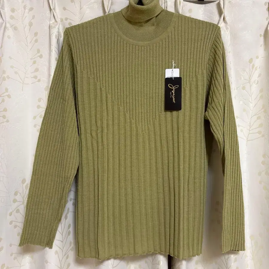 리브 짜임 터틀넥 스웨터 올리브색 모 30% 일본제