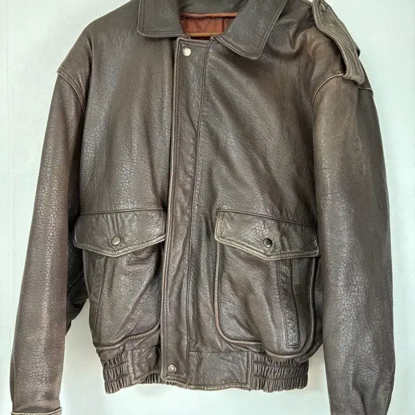브라운 가죽 MA-1 플라이트 자켓, 퀼팅 안감, 견장 디자인. - 색상: 브라운 - 소재: 가죽 - 안감: 퀼팅 - 포켓: 프론트 포켓 2개 - 디자인: 견장 포함 방문해 주셔서 감사합니다. 사이즈 - L 지퍼 나비봉 파손