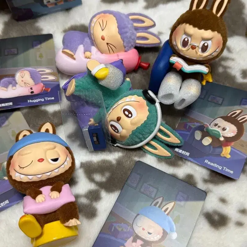 릴랙스한 토끼 피규어 세트, 약 10cm의 다양한 색상으로 전개됩니다.