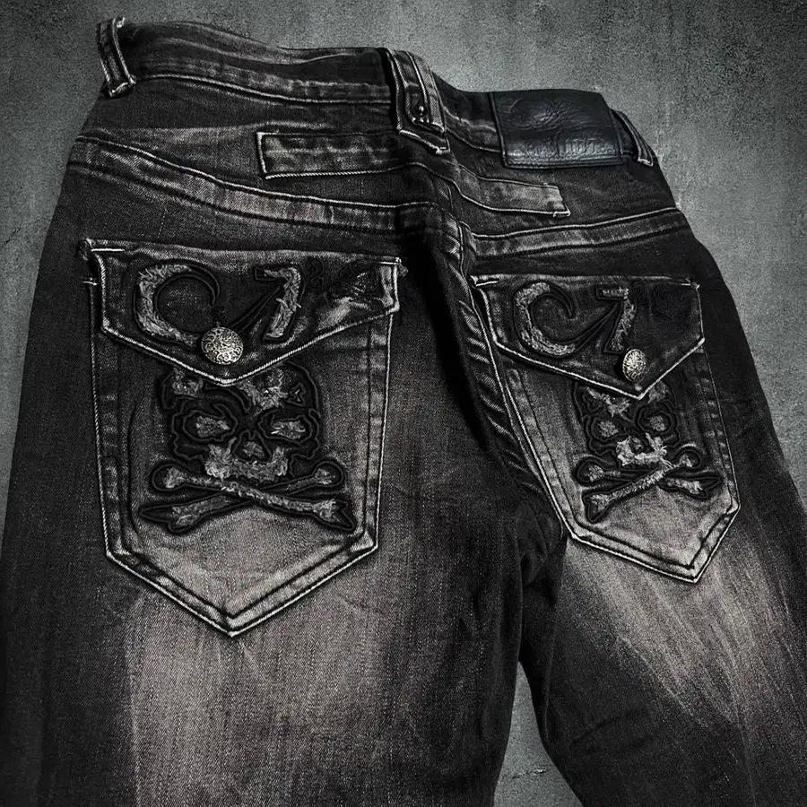 페이드 자수 블랙 데님 스트레치성 있는 원단