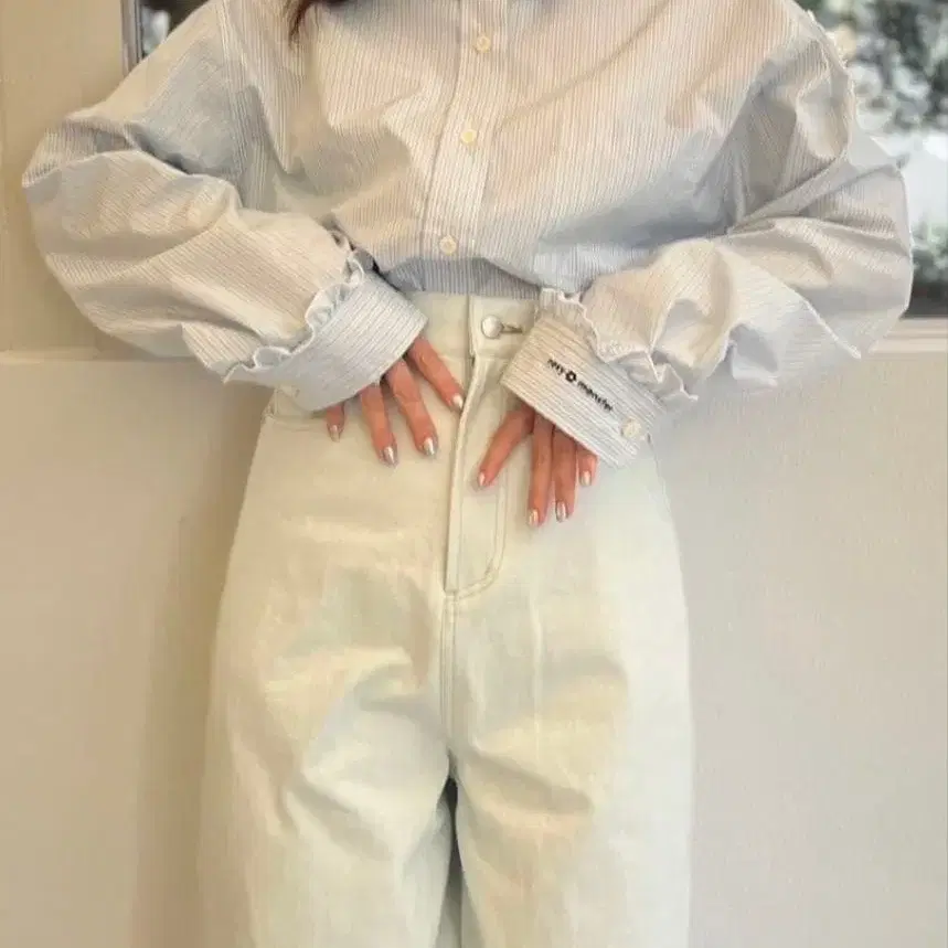 라이트 블루 긴팔 셔츠 소매 지퍼 포함