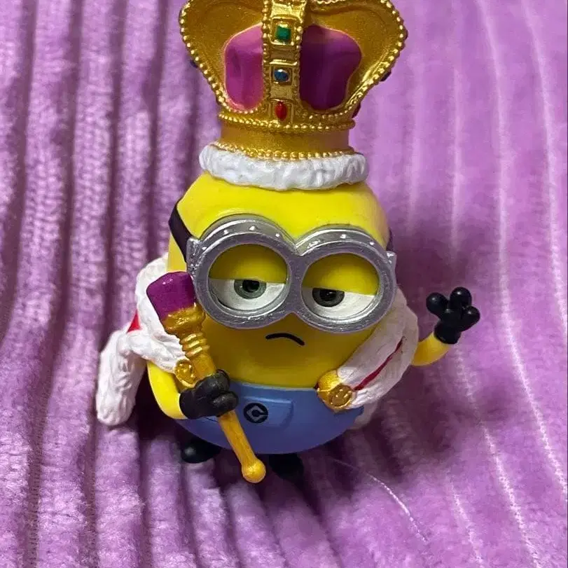 왕관과 망토를 착용한 미니언 피규어. - 캐릭터: 미니언 - 장식: 왕관과 망토 - 컬러: 옐로우 컬러와 파랑 - 소재: 플라스틱 물건을 놓았을 때 악센트로 어떠신가요? 가로 길이 3cm 세로 6cm