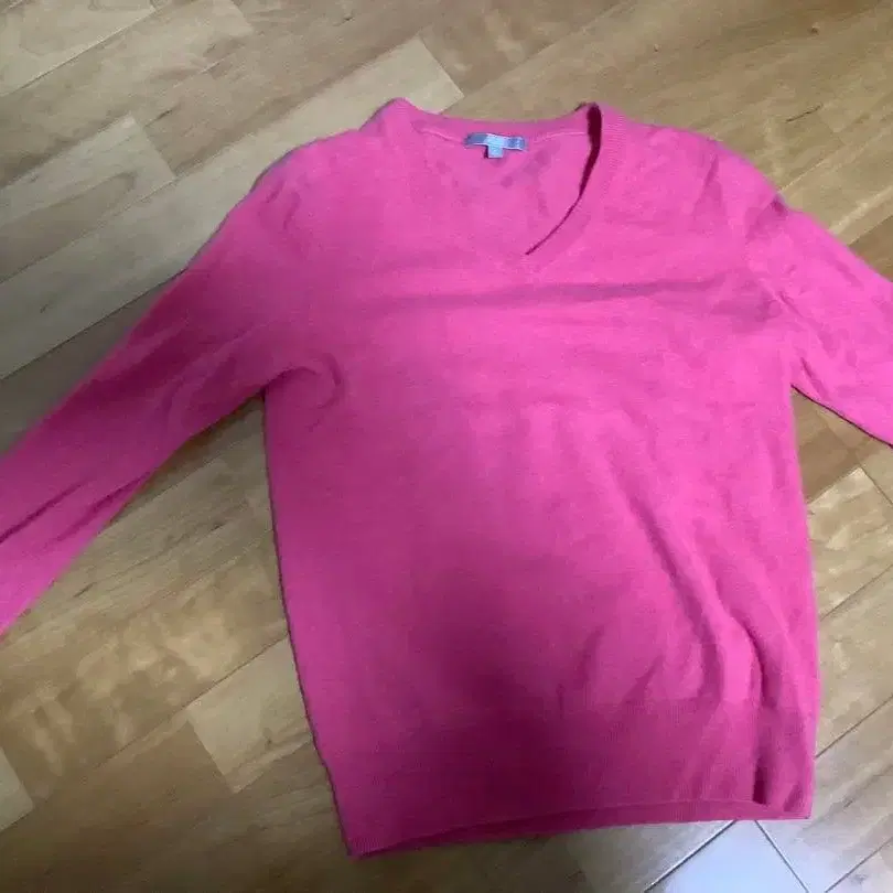 미사용 유니클로 캐시미어 V넥 니트 핑크 S 넥 스웨터