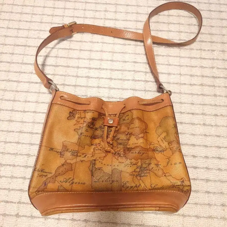 아이콘인 지도가 도안의 디자인이 특징적인 가죽 숄더백.