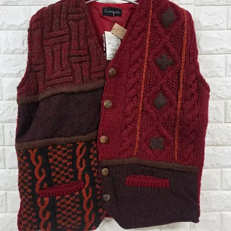 ✡️ 일단 미사용 새상품이지만, 장기 보관품입니다. ✴️ 완벽을 추구하시는 분은 입찰을 삼가해 주십시오. 네팔 지역의 핸드메이드 제품입니다. □ 다가오는 시기에 어떠신가요. 울 100% 케이블 니트 디자인 베스트, 버튼이 달린 포켓이 있습니다. - 브랜드: santafe - 사이즈: 50 - 색상: 068 - 소재: 울 100% - 디자인: 케이블 니트 패턴 - 특징: 버튼 있음, 포켓 있음