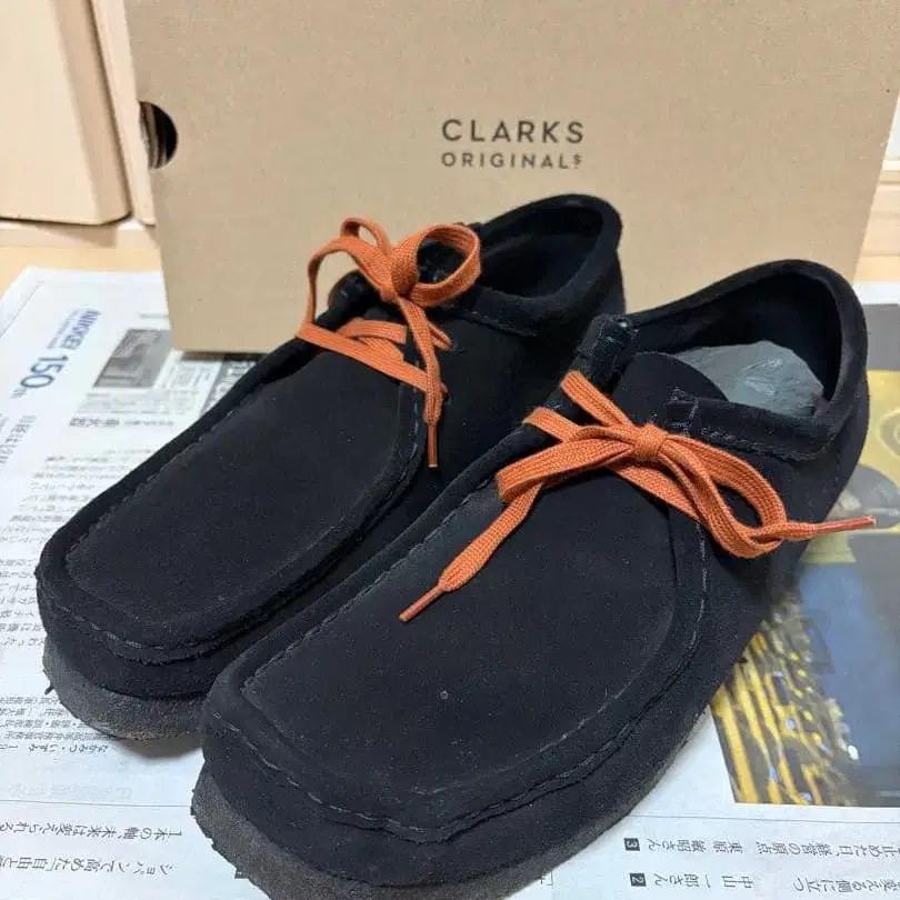 블랙 스웨이드 캐주얼 슈즈, 오렌지색 신발끈 포함.