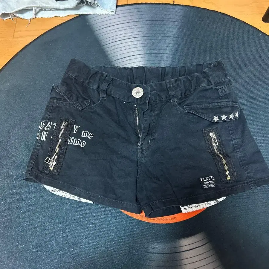 지퍼 포켓과 별 모양 스터드가 특징인 블랙 숏팬츠. - 색상: 블랙 - 디자인: 지퍼 포켓 부착 - 스타일: 숏팬츠 - 장식: 별 모양 스터드 - 소재: 코튼 혼방 #Y2K #구제 의류