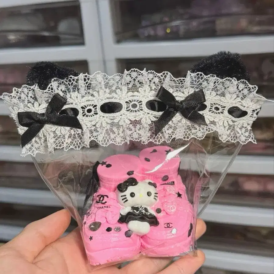 • [새상품] 헬로키티 리본 머리끈 훼미리마트 한정판 디자인 E