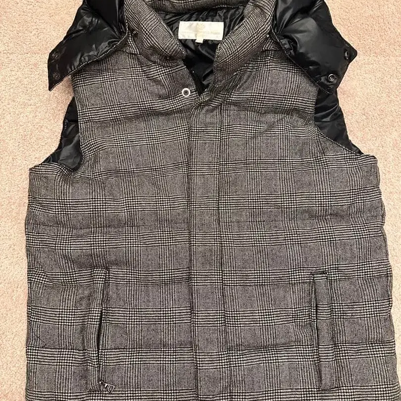 체크 무늬 다운 베스트입니다. 사이즈 46. 2회 정도 착용 후, 클리닝하여 보관한 제품입니다. - 색상: 그레이와 블랙 체크 무늬 - 사이즈: 46 - 소재: 겉감: 모 90%, 나일론 8%, 캐시미어 2%; 안감: 폴리에스테르 100%; 충전솜: 다운 90%, 페더 10%