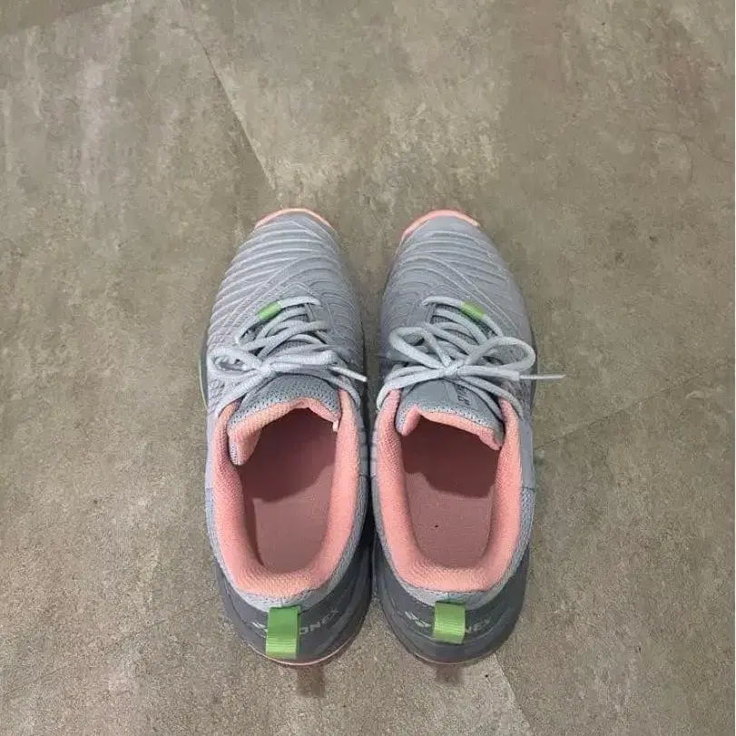 YONEX 테니스화, 그레이와 핑크 콤비네이션, 사이즈 23.5 cm. - 사이즈: 23.5 cm - 브랜드: YONEX - 색상: 그레이/핑크 테니스 코트 내에서 사용했습니다. 방문해 주셔서 감사합니다. 사이즈 - 23.5cm