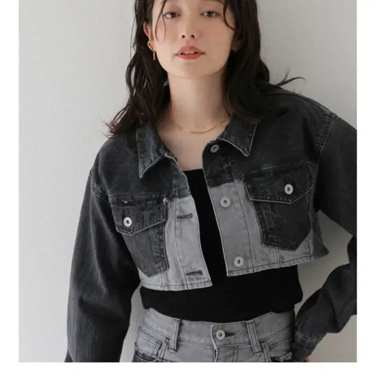 - 디자인: 크롭 기장, 단추식, 포켓 부착