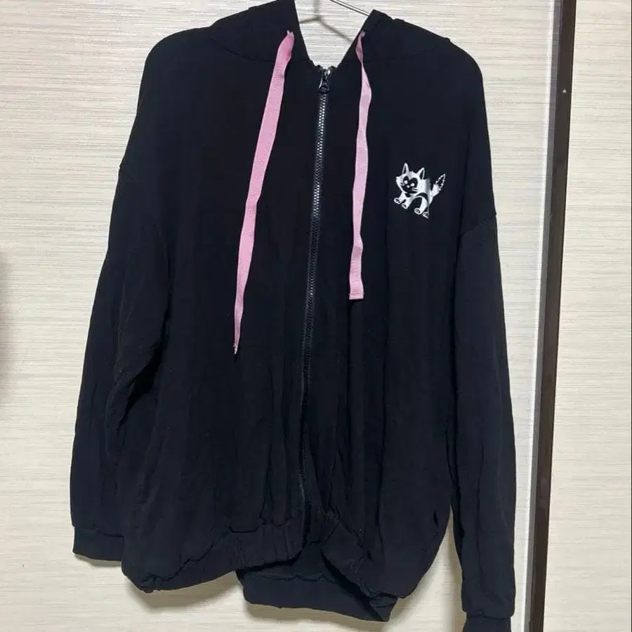 앙크루즈 고양이 귀 BIG 후드티 블랙 & 핑크