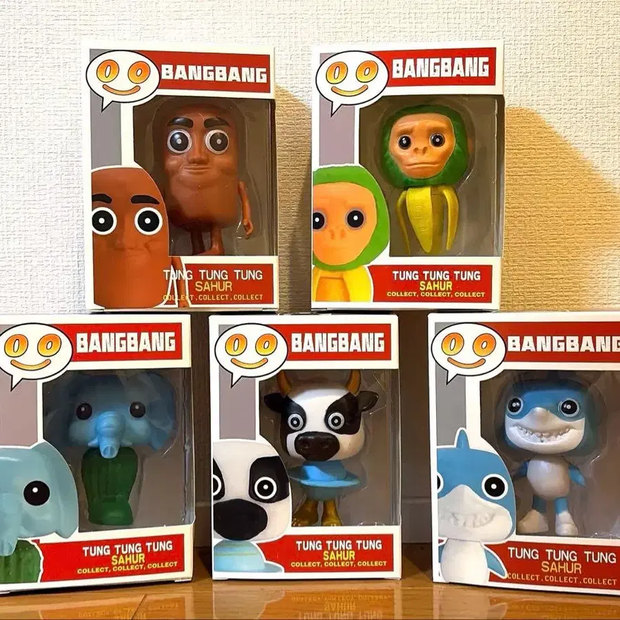 BANGBANG의 TUNG TUNG 피규어 5개 세트, 패밀리를 테마로 한 디자인. - 브랜드: BANGBANG - 캐릭터명: TUNG TUNG SAHUR - 피규어 종류: 액션 피규어 - 세트 내용: 5개 세트 - 상태: 미개봉 새상품 방문해 주셔서 감사합니다.