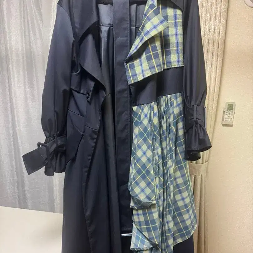 레이디 아젤 비대칭 트렌치코트 네이비 체크 원피스