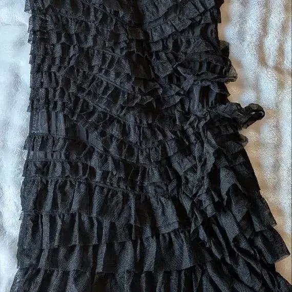 Jean Paul Gaultier 파워넷 프릴 디자인의 블랙 슬리브리스 미니 원피스. - 브랜드: Jean Paul Gaultier - 색상: 블랙 - 디자인: 프릴 디자인 - 스타일: 슬리브리스 - 타입: 미니 원피스 길이: 어깨부터 약 90cm 왼쪽 어깨에 삼중 프릴이 있습니다. 방문해 주셔서 감사합니다. 색상 - 블랙 계열 패턴 - 무지 실루엣 - 타이트