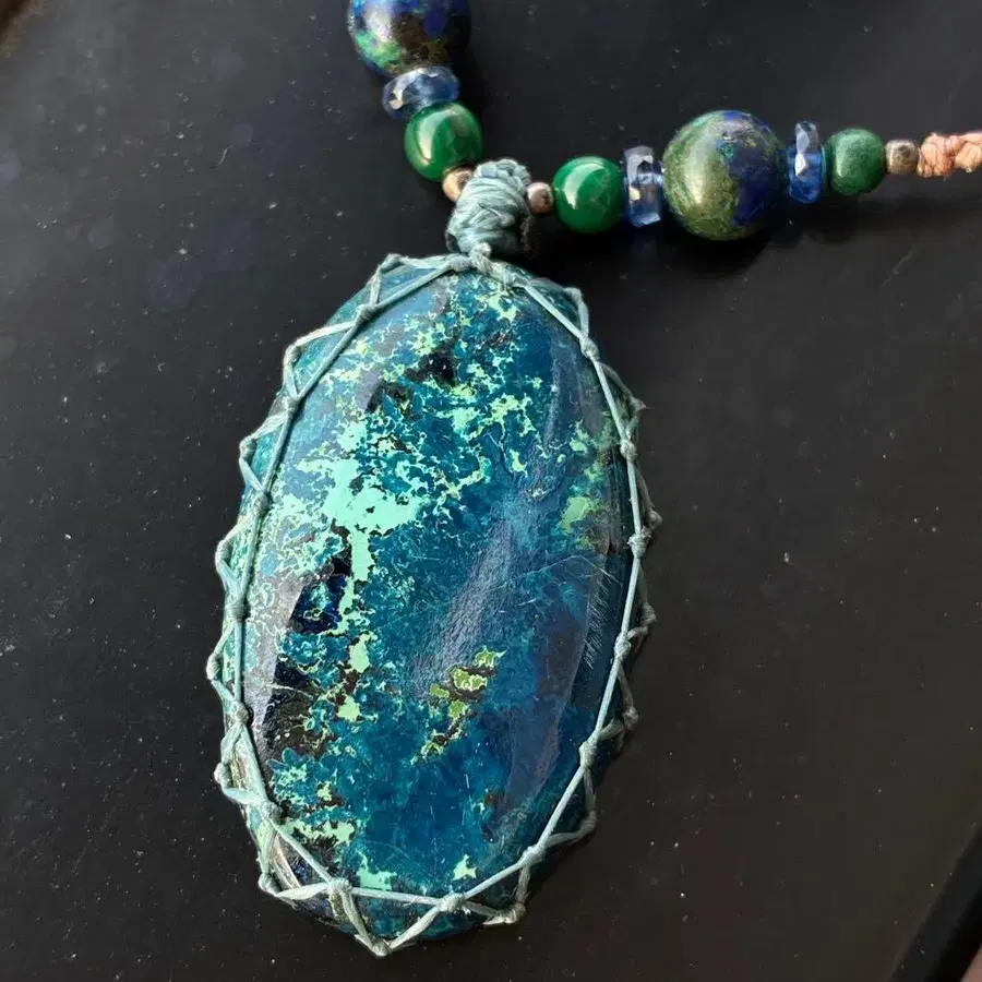 아즈라이트 루스를 사용한 펜던트 아즈라이트, 맬러카이트, 카이야나이트 등으로 장식한 펜던트입니다.
