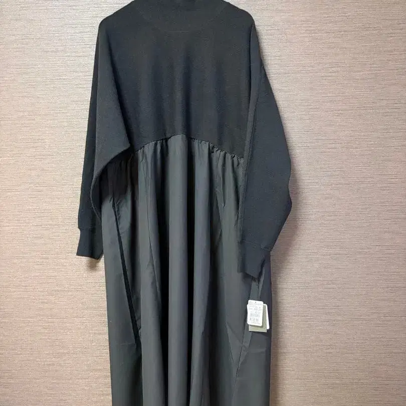터틀넥 블랙 롱 원피스, 니트와 원단의 콤비네이션이 특징. - 색상: 블랙 - 디자인: 터틀넥, 롱 기장, 드레이프 디자인 - 소재: 니트와 원단의 콤비네이션 - 소매: 긴팔 방문해 주셔서 감사합니다. 사진은 빛의 영향으로 색상이 밝게 나왔지만, 확실한 블랙입니다.