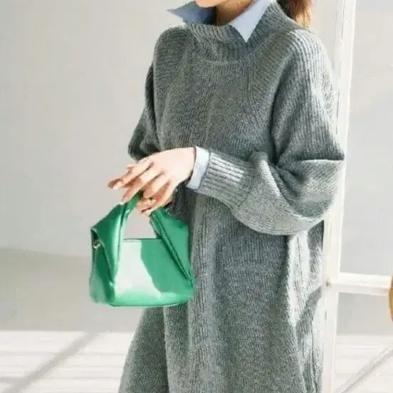 emi+ 터틀넥 A라인 니트 원피스