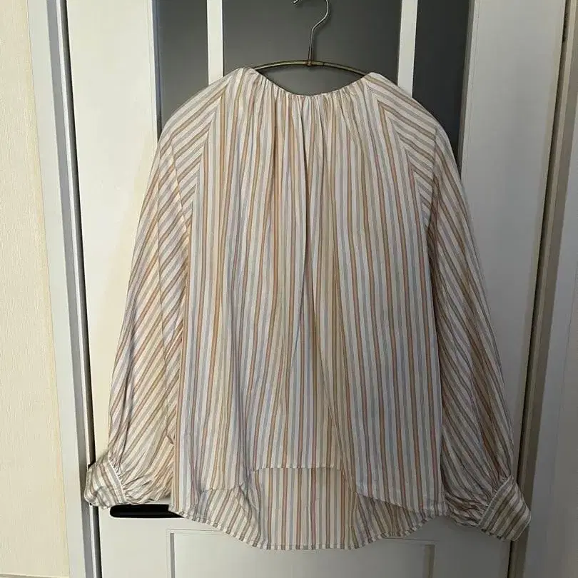 한 번만 착용한 상품이라 새상품급입니다. 스트라이프 디자인의 벌룬 슬리브 셔츠, 라운드넥으로 스타일리시합니다. - 색상: 스트라이프 (화이트, 베이지, 오렌지) - 스타일: 벌룬 슬리브 - 디자인: 라운드넥 - 소매 길이: 긴팔 방문해 주셔서 감사합니다. 사이즈 - FREE SIZE 사이즈 - M