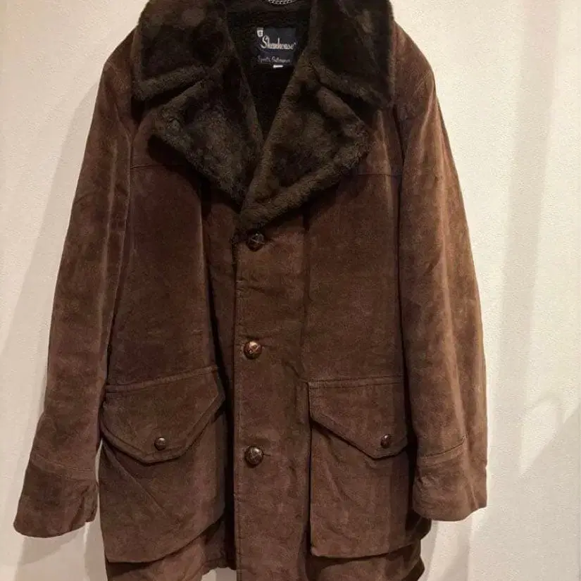 70s shanhouse 코듀로이 보아 런치 코트 사이즈 40 기장 88, 가슴 너비 63, 어깨 너비 50, 소매 길이 67 오래된 상품이라 사용감은 있지만 눈에 띄는 얼룩이나 데미지는 없습니다.
