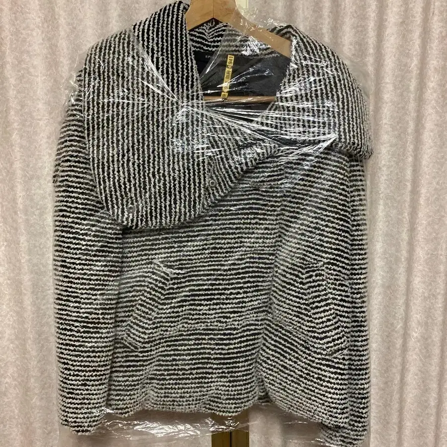 목 부분에 버튼이 있어 열어서 입거나 잠가서 입는 것으로 느낌을 변화시킬 수 있습니다. 매우 따뜻합니다. 클리닝 완료 상품입니다. 흑백 화이트 블랙