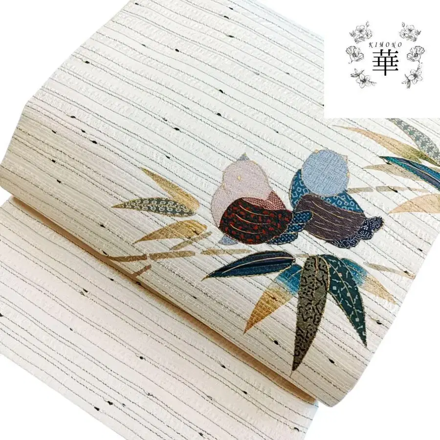 • 화 후쿠로 오비 카스미 새 꽃 금 베이지