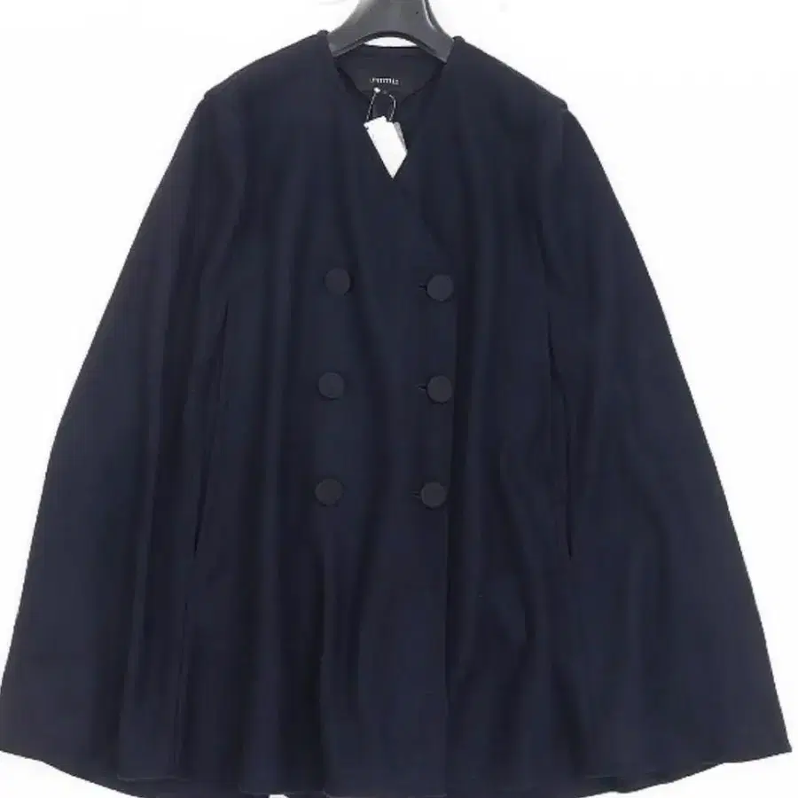 네이비 색상의 울 소재 더블 브레스트 케이프 자켓.