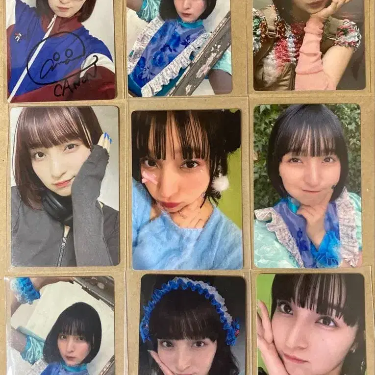 KiSS KiSS 캐논 포토 카드 9장 세트입니다. 왼쪽 위에서부터 2장의 카드가 사인 포함입니다. 개봉 후 슬리브에 넣어 보관했습니다. 낱개 판매는 생각하고 있지 않습니다. 미세한 흠집 등을 신경 쓰시는 분은 구매를 삼가해 주십시오. KiSSKiSS 키스키스 KiSSKiSS 트레이딩 카드