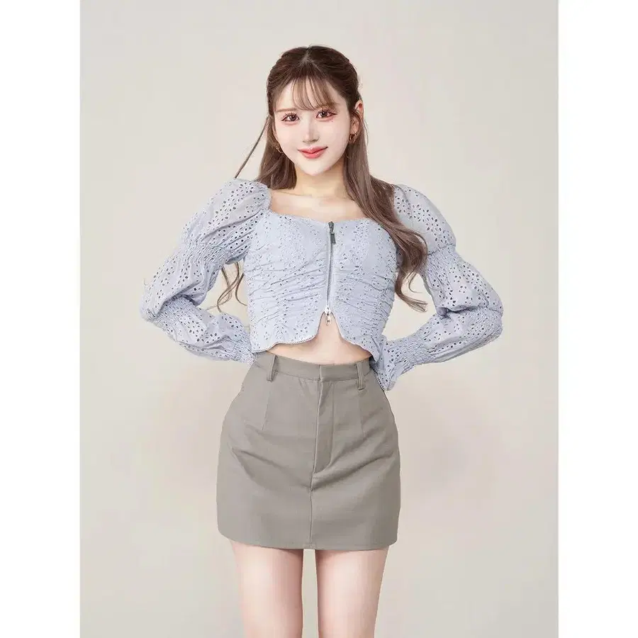 [새상품 시착만 한 상품] 26SS 르쉘 블루 하이넥 스트레치 레이스 탑