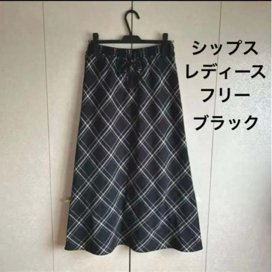 롱 스커트 체크 플레어 스커트 ships 쉽스 블랙