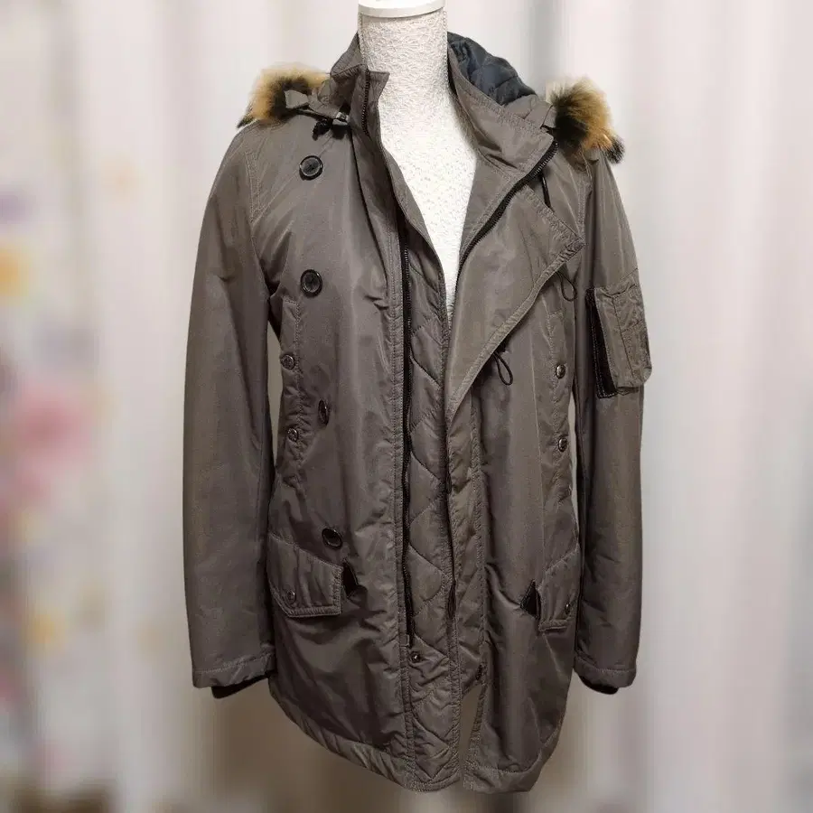 방문해 주셔서 감사합니다! 퍼 부분과 후드는 개별적으로 탈부착이 가능합니다. 안쪽의 검은색 부분도 탈부착 가능합니다. 색상 - 브라운 계열 어깨 너비/가슴 너비/소매 길이/기장 어깨 너비 - 45cm 가슴 너비 - 49cm 소매 길이 - 64cm 기장 - 75cm