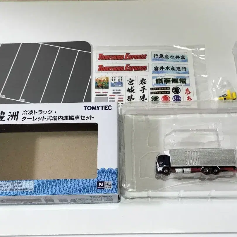 TOMYTEC의 트럭 컬렉션 토요스 냉동 트럭 터렛식장내 운반차 세트의 이스즈 포워드 중형 냉동차 외입니다. 중형 냉동차 외에는 모두 갖추어져 있습니다. - 브랜드: TOMYTEC - 모델: 냉동 트럭 - 스케일: N 게이지 - 부속품: 씰 세트, 받침대 - 색상: 파랑, 은색 - 차량 타입: 트럭