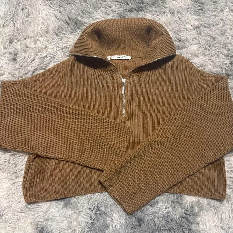 하이넥 지퍼가 달린 브라운 스웨터, 100% 폴리에스테르 소재로 쾌적한 착용감. - 브랜드: oval square - 사이즈: S - 색상: 브라운 - 디자인: 하이넥, 지퍼 포함 - 소재: 100% 폴리에스테르 방문해 주셔서 감사합니다. 사이즈 - S