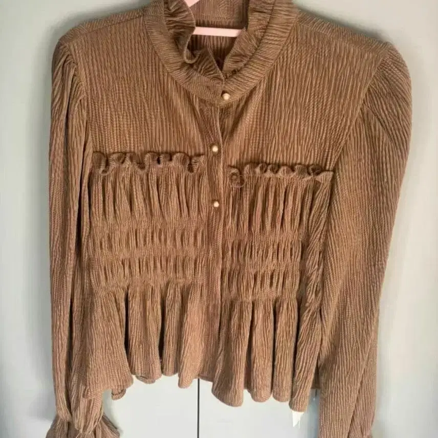 브라운 벨벳 버튼 셔츠