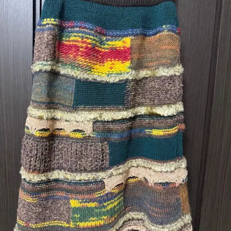 울 소재로 가을/겨울에 핏타입니다. 이어 붙인 패치워크가 아주 귀여워요! 허리는 밴딩으로 되어 있습니다. 평평하게 놓았을 때 치수 측정(cm) 허리 약 30(단면) 스커트 길이 약 67