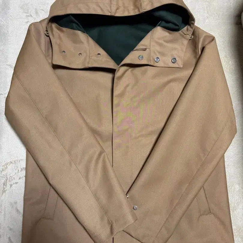 베이지 색상의 후드 부착 자켓입니다. 안쪽은 다크 그린 색상이며 스냅 버튼이 달린 소매가 특징입니다. 택은 제거했지만 미사용품입니다. #자켓 #남성 패션 #EDIFICE #아우터