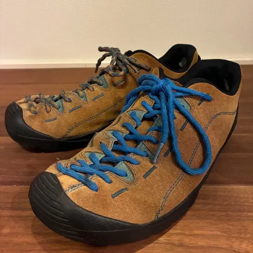 방문해 주셔서 감사합니다. KEEN의 JUSPER, 사이즈 27.5cm입니다. 말할 필요도 없는 신발로, 아웃도어에서 활약하는 이미지가 있지만, 저는 주로 업무용 (비즈니스 캐주얼)의 주력으로 사용했습니다. 개인적으로는 네이비 계열의 슬랙스에 정말 잘 어울린다고 생각합니다. 오래 신어도 피로하기 어렵고, 그 점은 역시 아웃도어 신발 특유의 기능이라고 생각합니다. 밑창의 마모, 이너의 뒤꿈치에 찢김이 있지만, 아직 현역으로 신을 수 있다고 생각합니다. 양쪽 신발 끈을 교체했지만, 각각 여분의 끈 포함입니다. 잘 부탁드립니다.