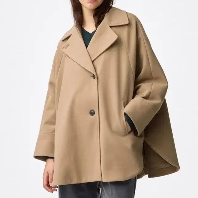 비어즐리 스탠드 카라 판초 케이프 코트 카멜 브라운