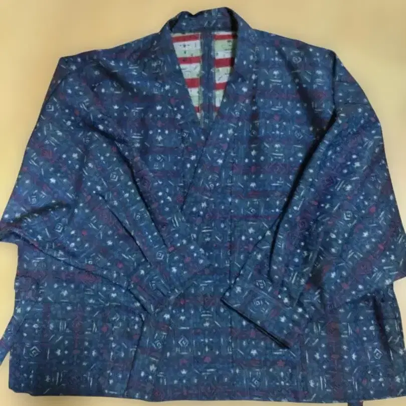 화학 섬유 기모노 원단 수제. 다크 네이비 바탕에 빨간색, 아이보리 등의 줄무늬 무늬. 가볍고 주름이 잘 지지 않습니다. 겉옷 기장 58cm 화장 60cm 몸의 폭 58cm 바지 밑위 33cm 인심 60cm 겨드랑이 길이 89cm 방문해 주셔서 감사합니다.
