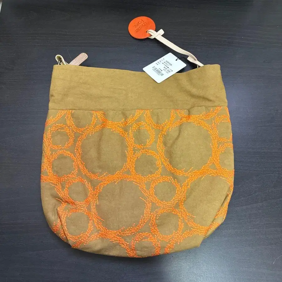 차분한 브라운 계열의 바디에 오렌지 자수가 돋보이며, 심플하면서도 존재감 있는 디자인입니다.
