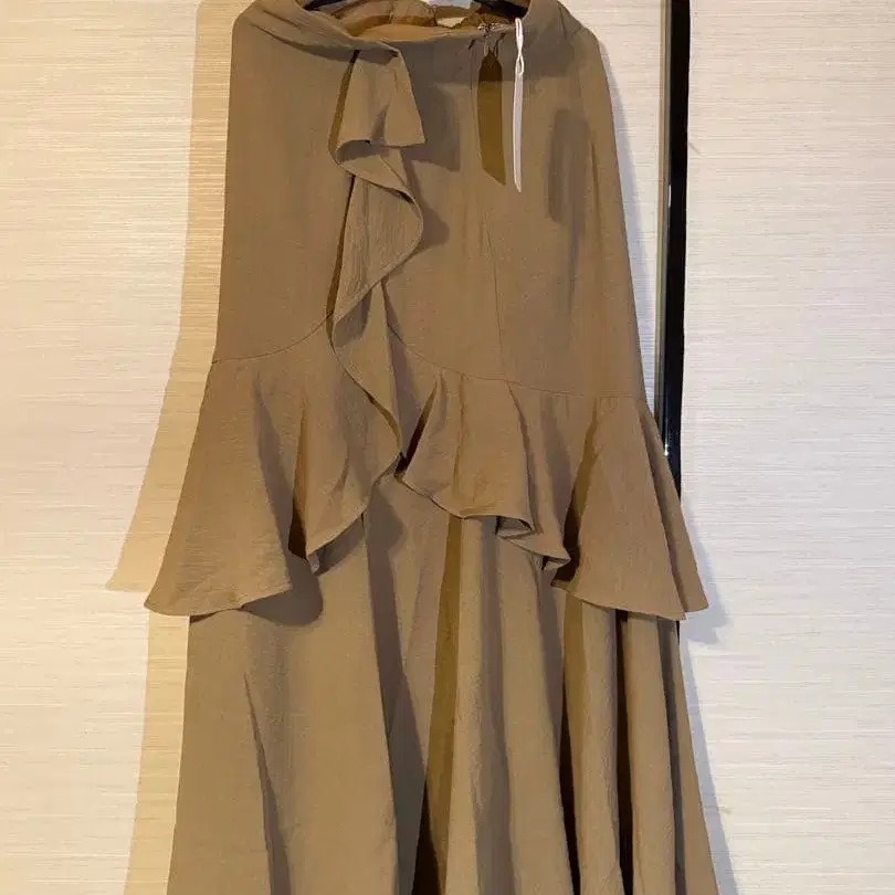 프릴 달린 베이지 플레어 스커트